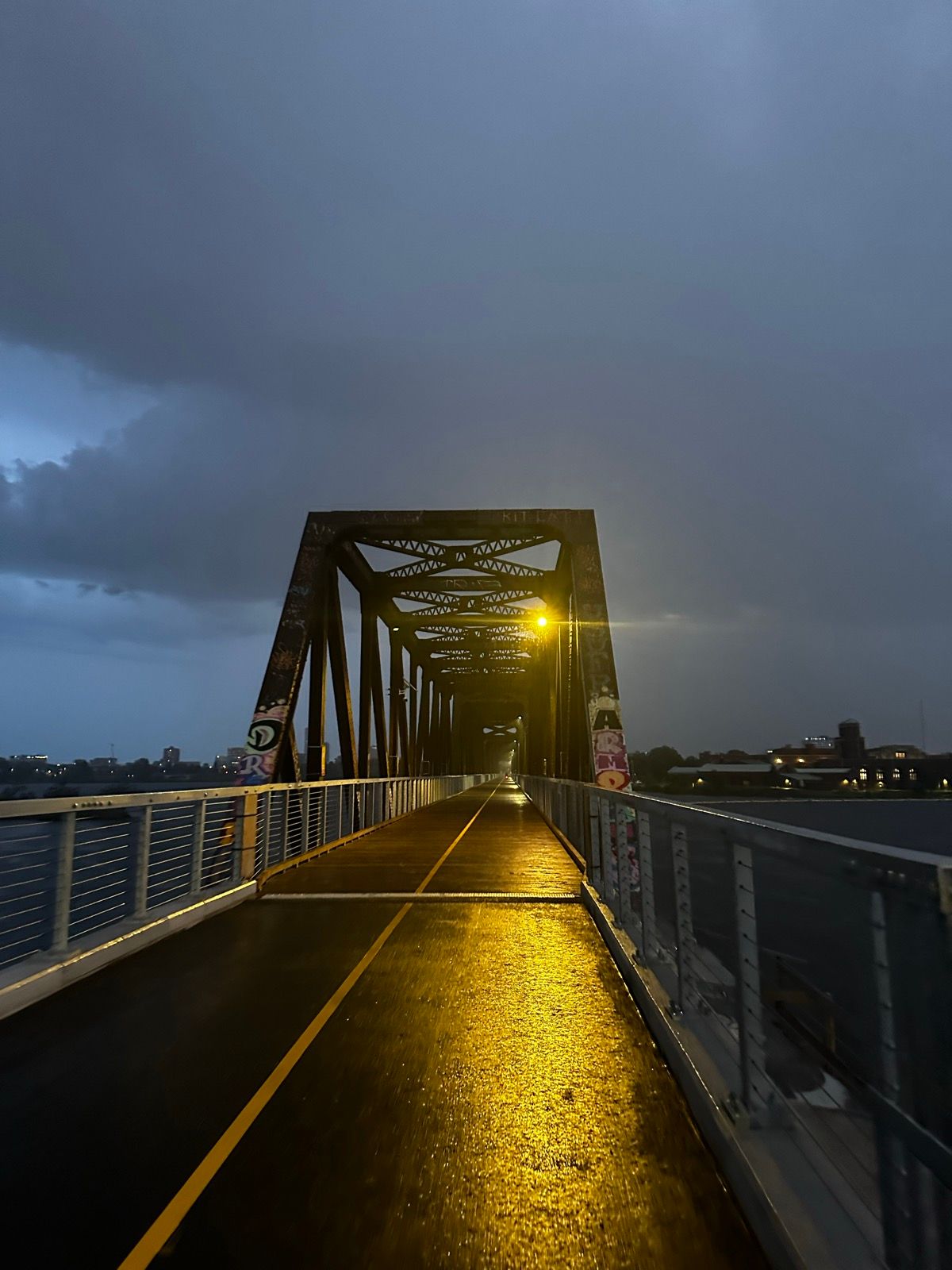 - ride with Jeremy under the rain crossing the new rail bridge